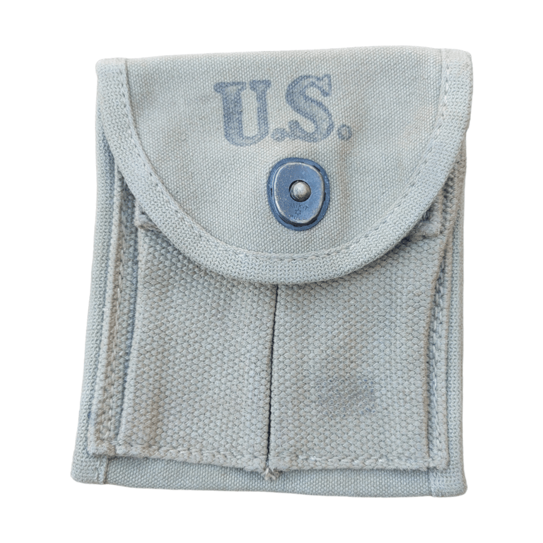 American (US) magazine pouch for two magazines of the M1 carbine. The magazine pouch is in good condition and was made in 1943 by Laird Schober.