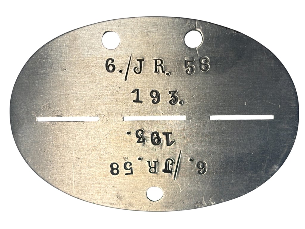 Authentic Heeres Erkennungsmarke issued to a soldier of the 6. Kompanie / Infanterie-Regiment 58.