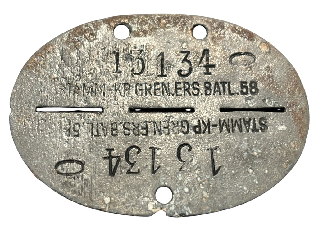 Authentic Heeres Erkennungsmarke issued to a soldier of the Stamm Kompanie / Grenadiers-Ersatz-Regiment 58.