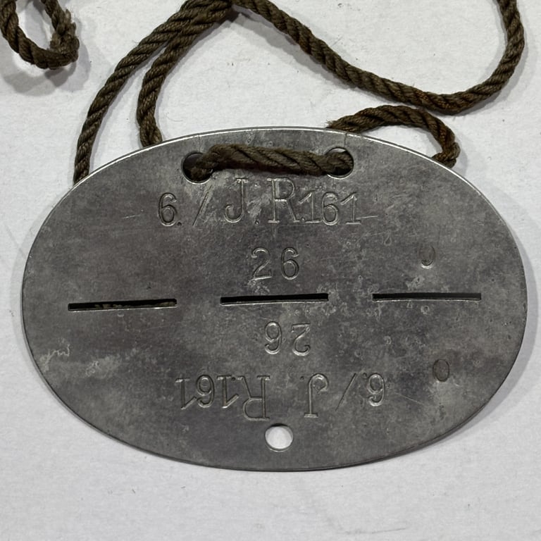 This is an original WWII German Erkennungsmarke (ID disc) belonging to soldier number 26 of the 6th Company, Infanterie-Regiment 161 (6./J.R.161).