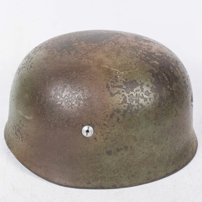 Step into history with this LW FJ M38 "Normandy" Camo Helmet, a iconic German Fallschirmjäger paratrooper helmet used during the Normandy campaign of WWII.
