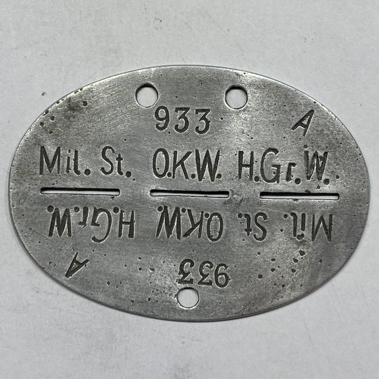 Rare original World War II German Erkennungsmarke (ID tag) marked Mil.St.O.K.W.H.Gr.W., indicating assignment to the Military Staff of the Oberkommando der Wehrmacht (OKW) – Army Group West.