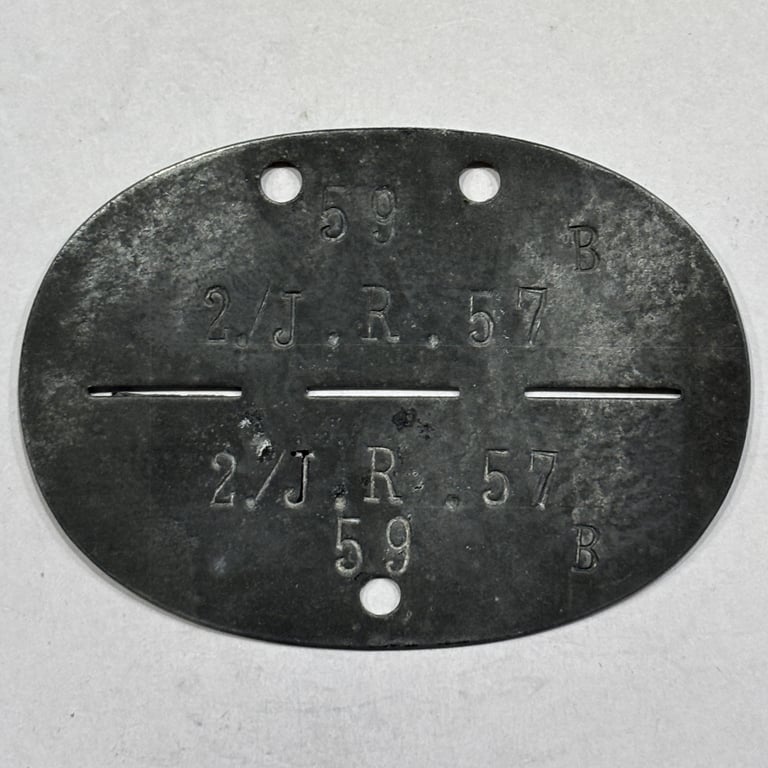 Original WWII German Erkennungsmarke from the 2nd Company, Infanterie-Regiment 57, roll number 59, blood group B.
