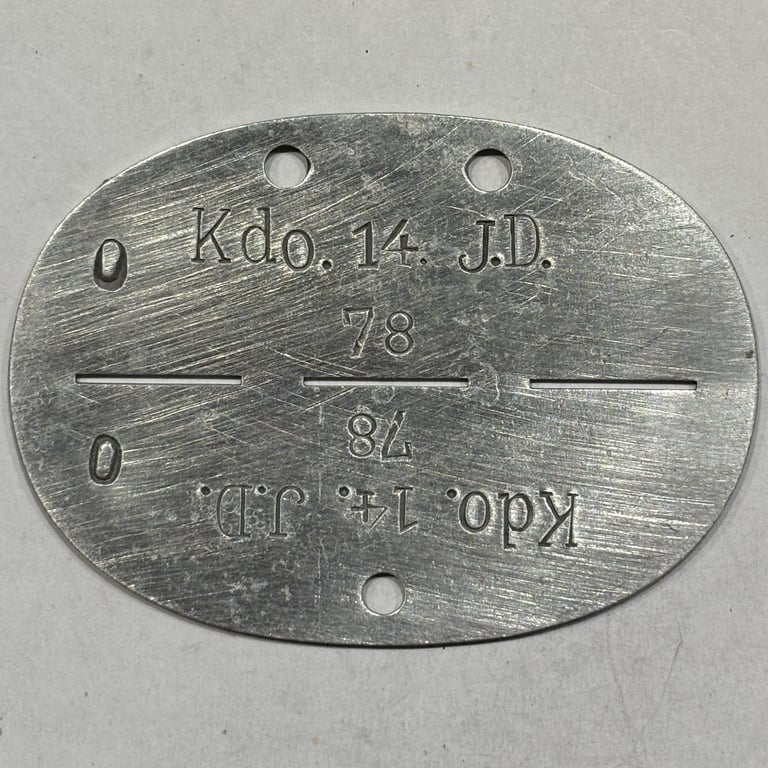This is an early-war Erkennungsmarke belonging to the Kommando (staff) of the 14th Infantry Division.