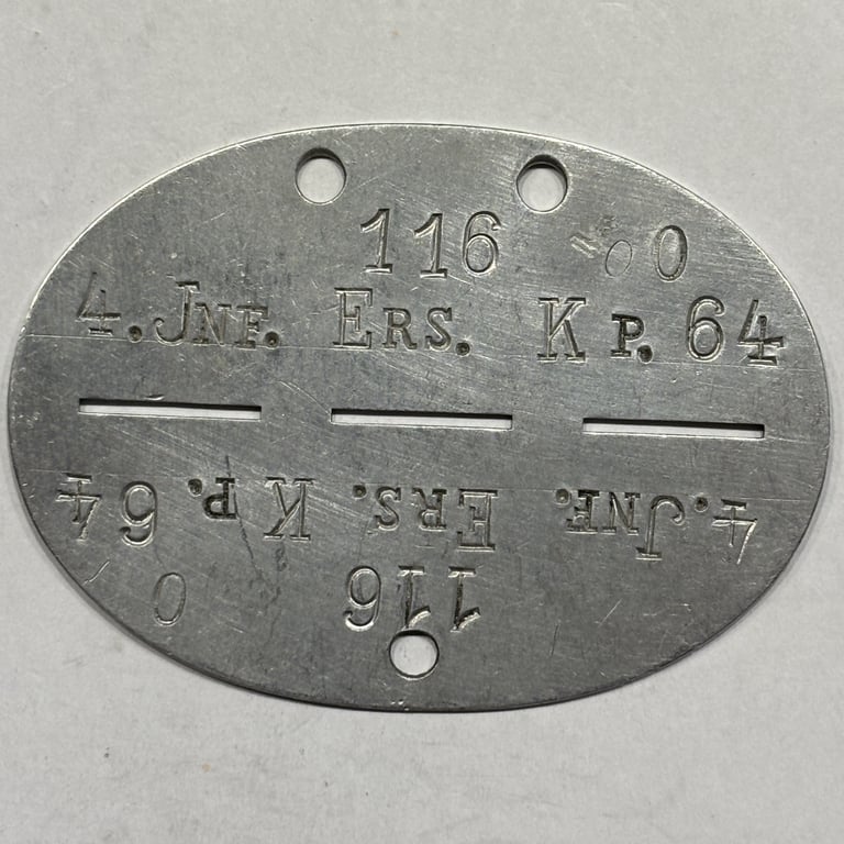 WWII German Erkennungsmarke (ID tag) from the 4. Kompanie, Infanterie-Ersatz-Bataillon 64.>/h2> This unit served as a replacement training battalion for infantry troops within Wehrkreis VI and was active in supplying men to front-line formations during the Second World War.