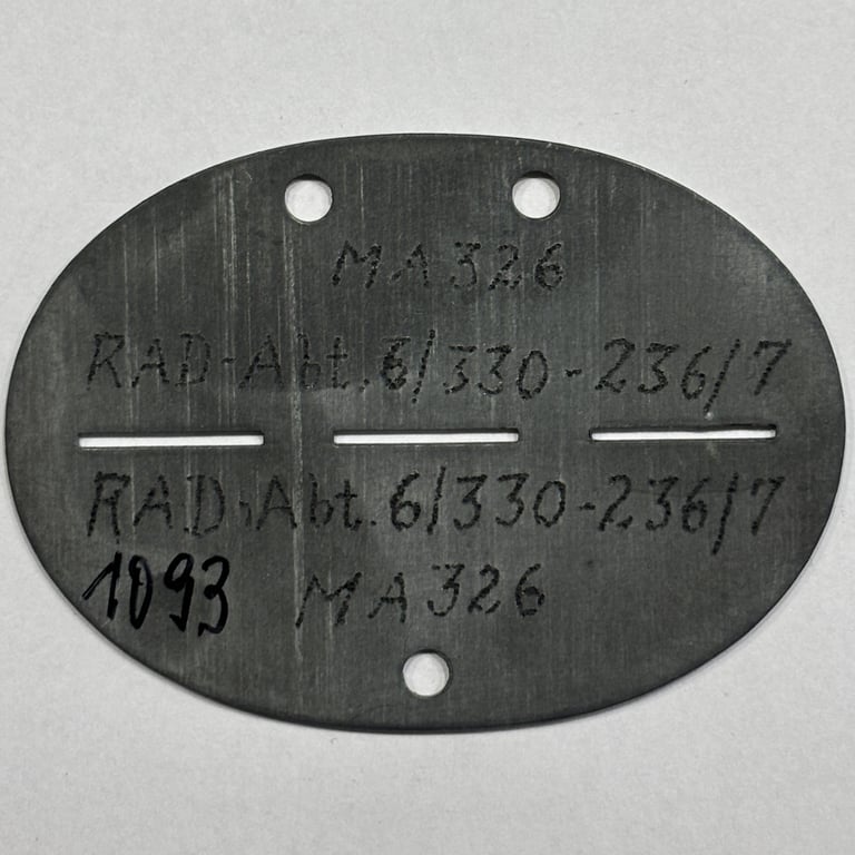 WWII German RAD Dog Tag – RAD-Abt. 6/330 - 236/7 (MA 326)