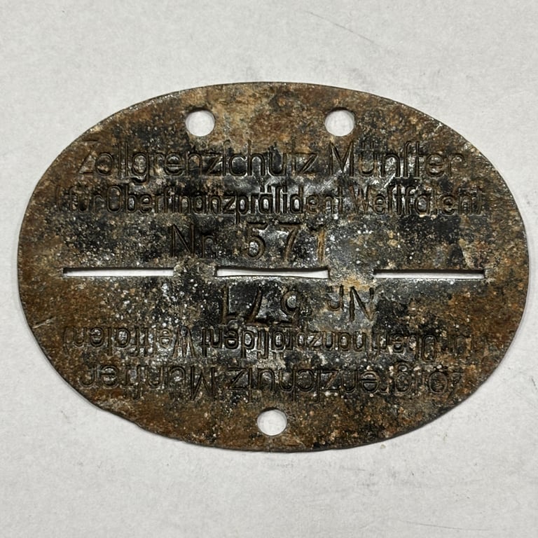 This particular tag is rare, as Zollgrenzschutz ID tags are not common, especially with regional designations like Münster and mention of Oberfinanzpräsident.