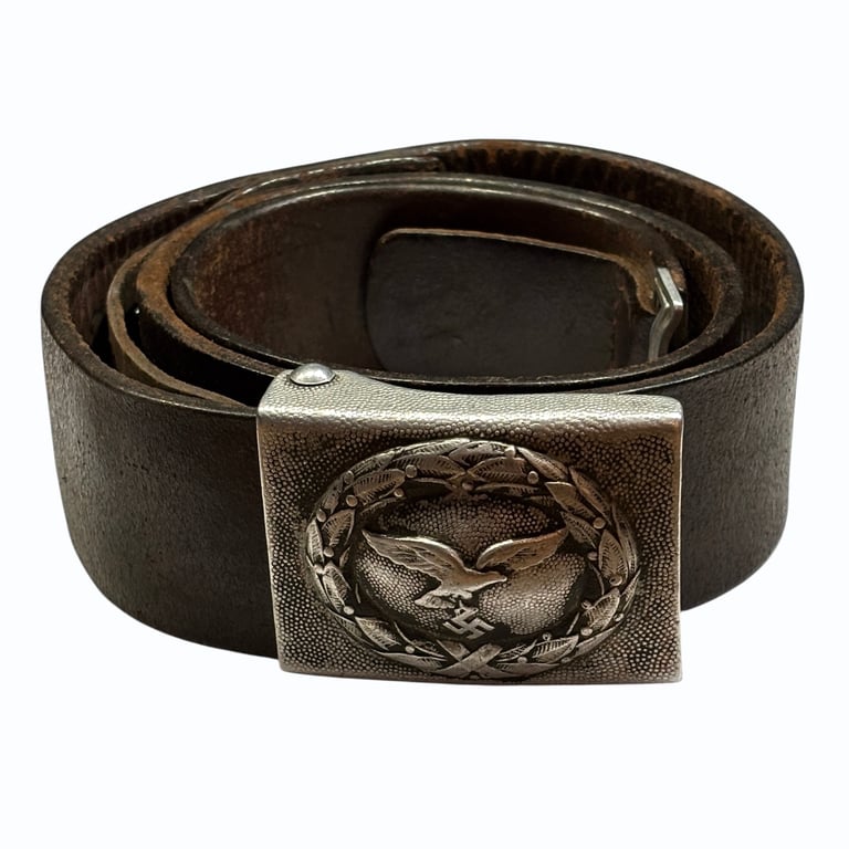 The belt itself is crafted from high-quality brown leather, typical of early Luftwaffe equipment, and measures approximately 85 cm in length. The leather is still supple, with strong stitching and no repairs, cracks, or tears—making it a functional and collectible piece for a Luftwaffe collection.