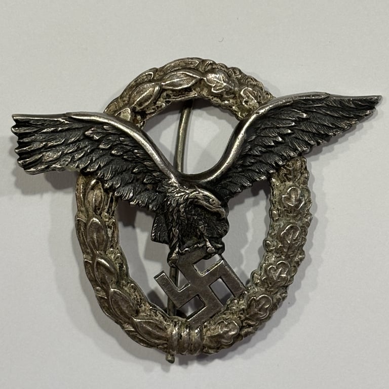 This is an original Luftwaffe Pilot’s Badge, a historically significant award first introduced in January 1935 under the Deutscher Luftsportverband (DLV) and officially adopted by the Luftwaffe on 26 March 1936 by order of Hermann Göring. It was awarded to pilots upon successful completion of theoretical studies, flight training, and the receipt of their military pilot’s license.