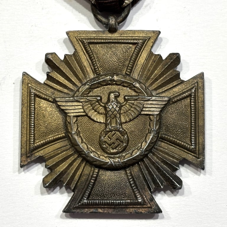 The NSDAP Long Service Award for 10 Years was instituted on 2 April 1939 by Adolf Hitler to recognize extended and loyal service by members of the National Socialist German Workers' Party (NSDAP). This particular example represents the bronze class, awarded for a full decade of continuous service.