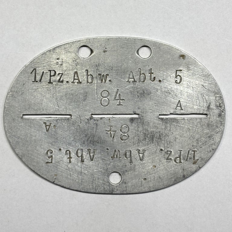German Dog Tag – 1./Panzerabwehr-Abteilung 5