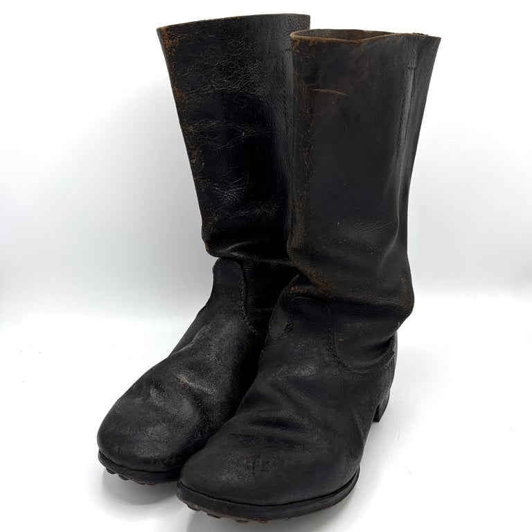 These jackboots were part of the standard issue for German soldiers, particularly in the early years of WWII. Their rugged construction made them suitable for long marches and harsh field conditions. By mid-war, high leather boots were phased out in favor of ankle boots due to material shortages, making these early-war models more collectible today.