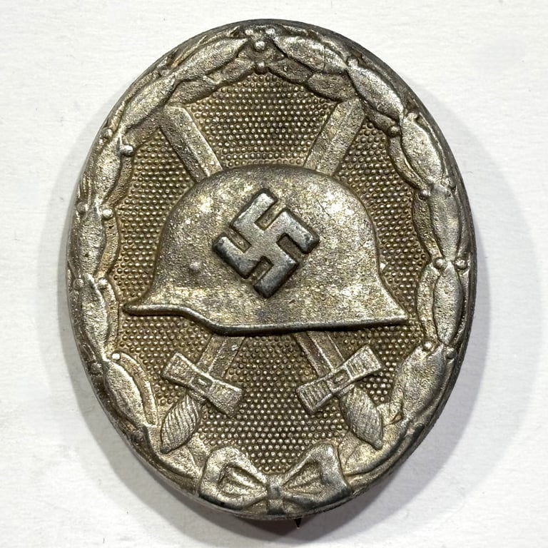The Wound Badge was originally instituted during WWI and reintroduced in 1939 by Adolf Hitler. The Silver Grade specifically recognized soldiers wounded multiple times and was commonly seen worn on the left breast pocket of the uniform.
