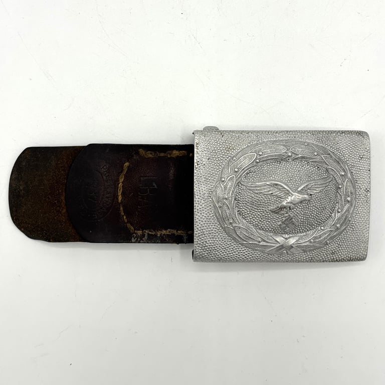 This is an excellent example of an early war Luftwaffe EM/NCO belt buckle, complete with its original pre-war dated leather tab. The “L.B.A.” (Luftwaffe-Bekleidungsamt) marking indicates official Luftwaffe acceptance and military issue. From the collection of approximately 900 German buckles accumulated by John R. Angolia