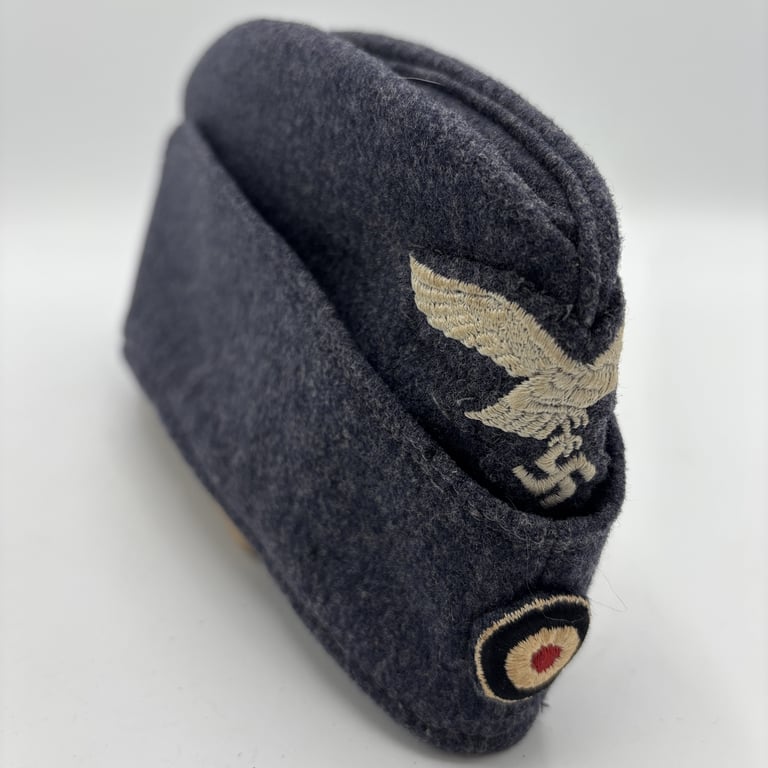 This is a desirable and original example of WWII German Luftwaffe headgear, perfect for collectors of Third Reich militaria, WWII uniforms, or historical aviation memorabilia.