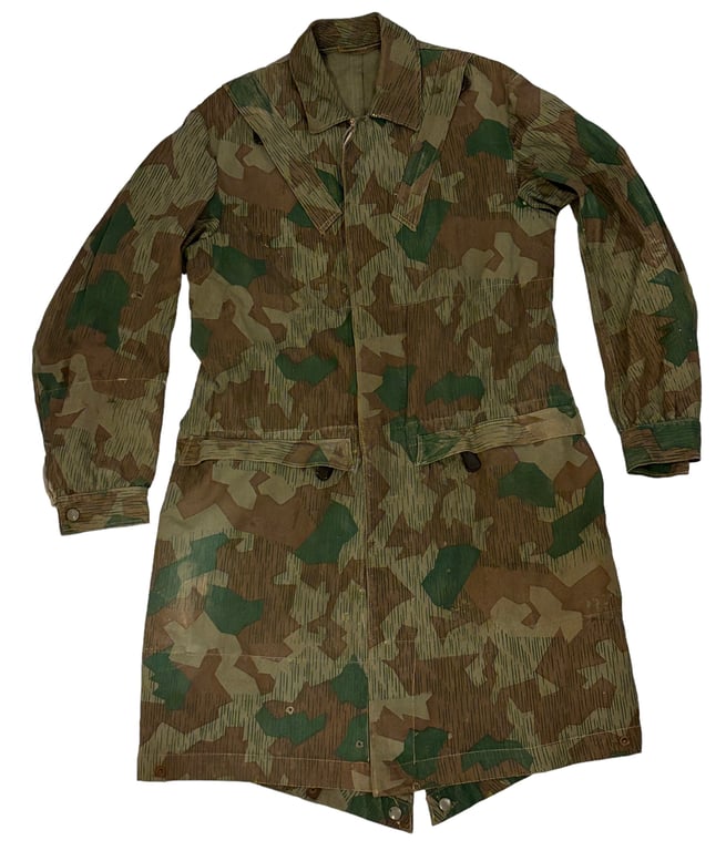 Rare and worn genuine Fallschirmjäger jump smock in good condition, executed in Splittertarn camouflage. The smock is complete with all of its zippers. They are made by Rapid. The smock has normal wear. The press buttons are rusty. A very desirable smock which is getting hard to find these days.