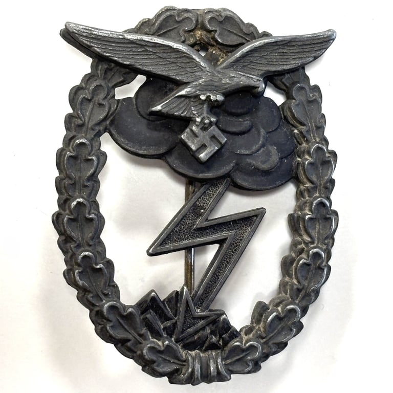This original Luftwaffe Ground Assault Badge is a sought-after WWII German military decoration awarded to Luftwaffe personnel engaged in direct ground combat. Instituted on March 31, 1942, by Reichsmarschall Hermann Göring, the badge honored members of the Luftwaffe Field Divisions, Fallschirmjäger (paratroopers), and ground crews for their frontline service.