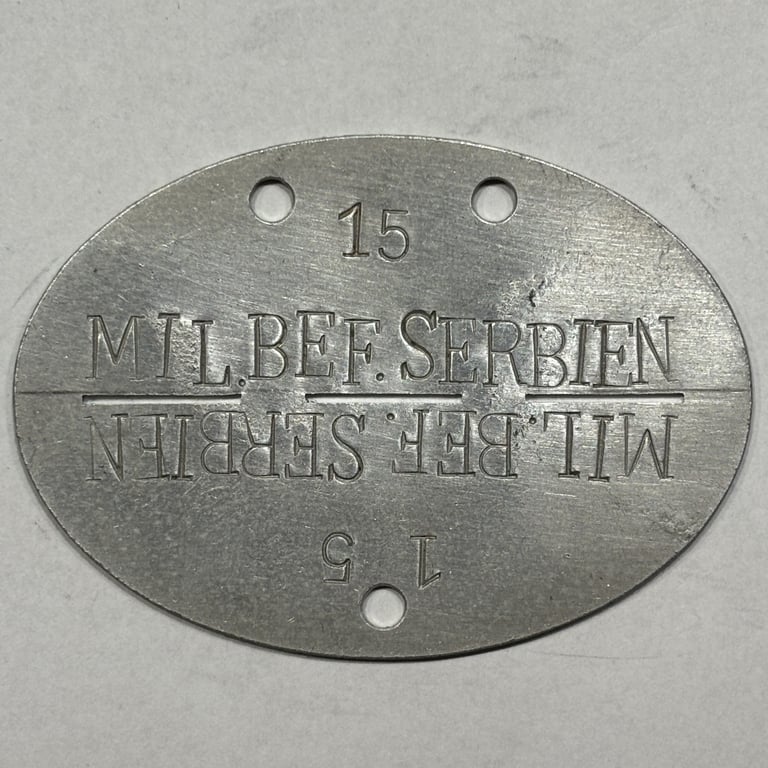 Original World War II German Erkennungsmarke (identification tag) issued to personnel serving with the Militärbefehlshaber Serbien (Military Commander Serbia) during the German occupation of Yugoslavia in WWII.